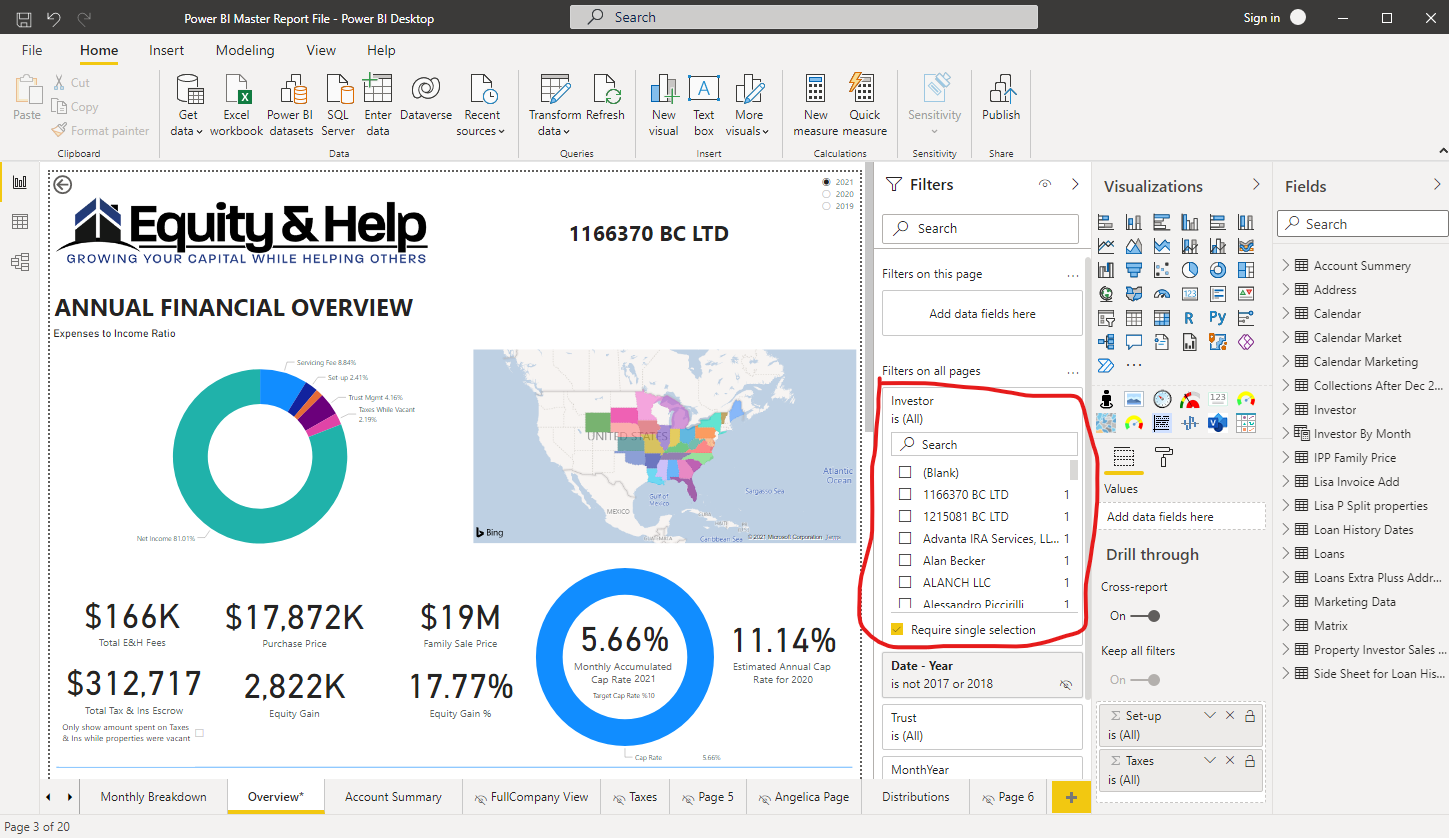 - Go into "overview", and change the investor filter, and set it to all on Power BI by clicking (Blank) once then clicking it again so for the investor filter is set to (All).