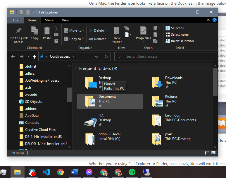 Whether you're using a PC or a Mac, the file system icon will be on the toolbar. On a PC, the File Explorer icon looks like a folder, as in the image below.
